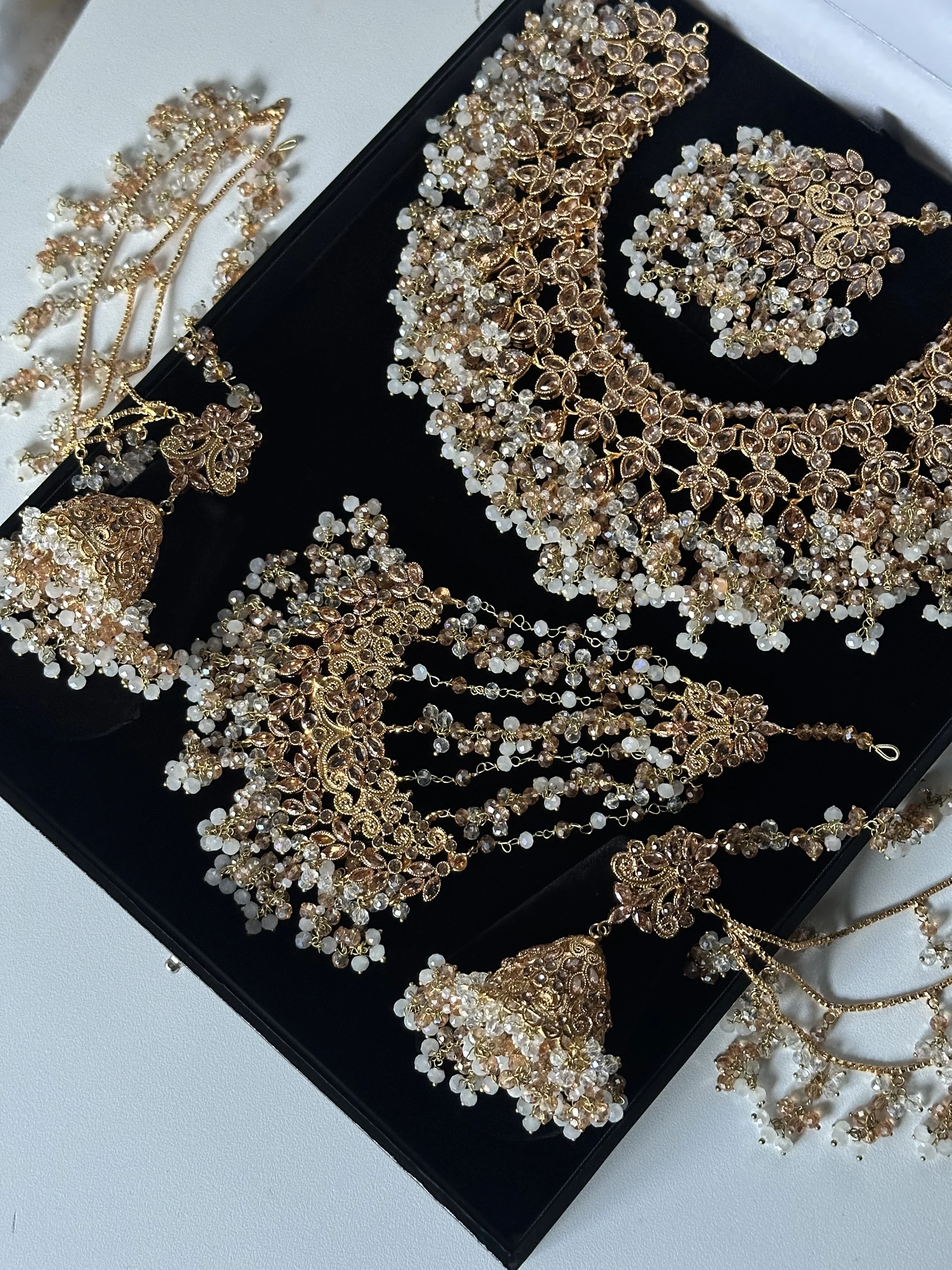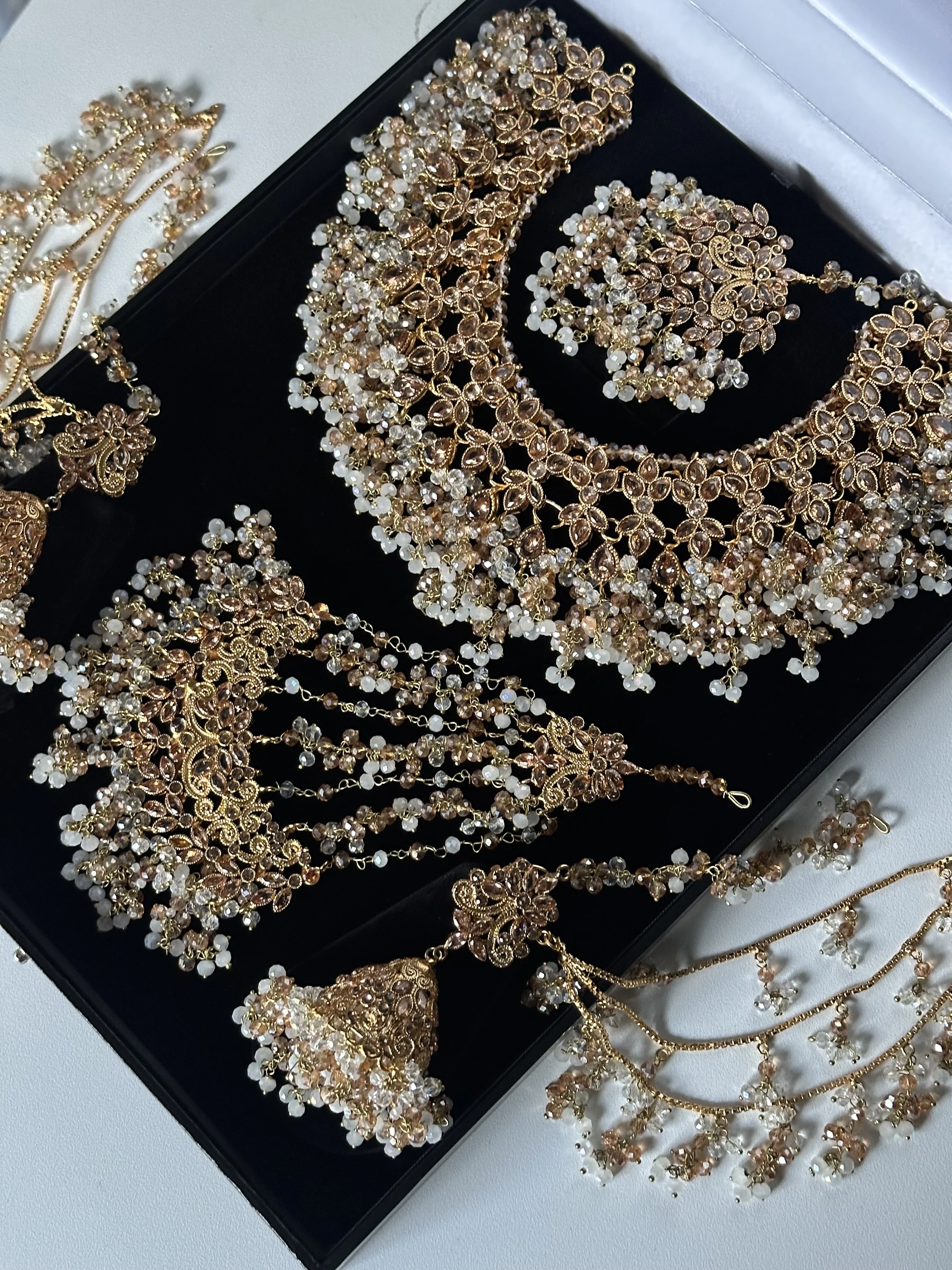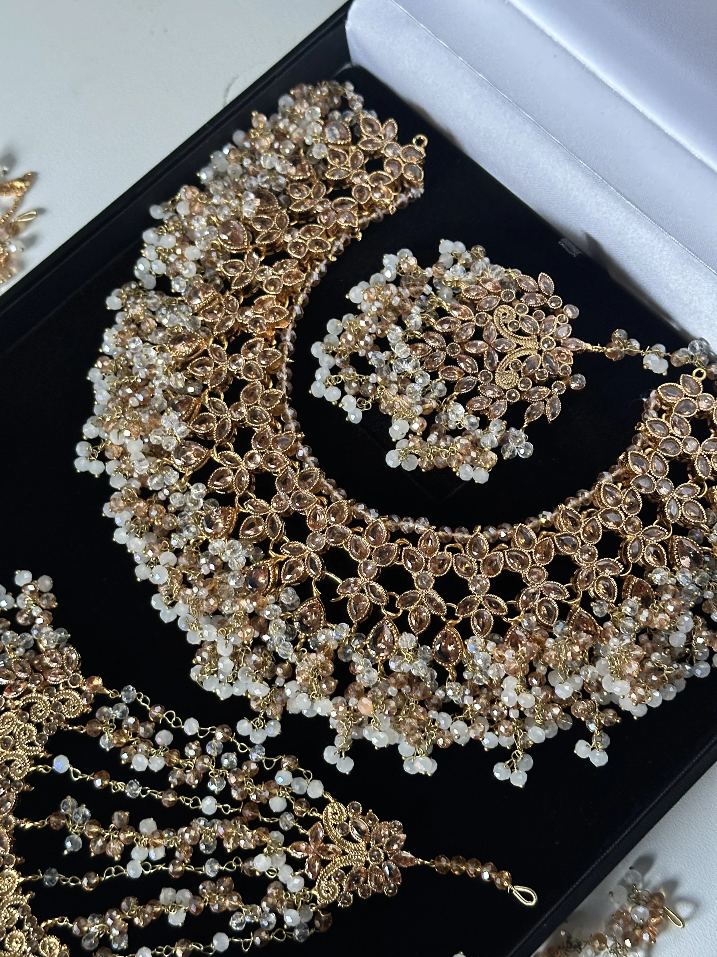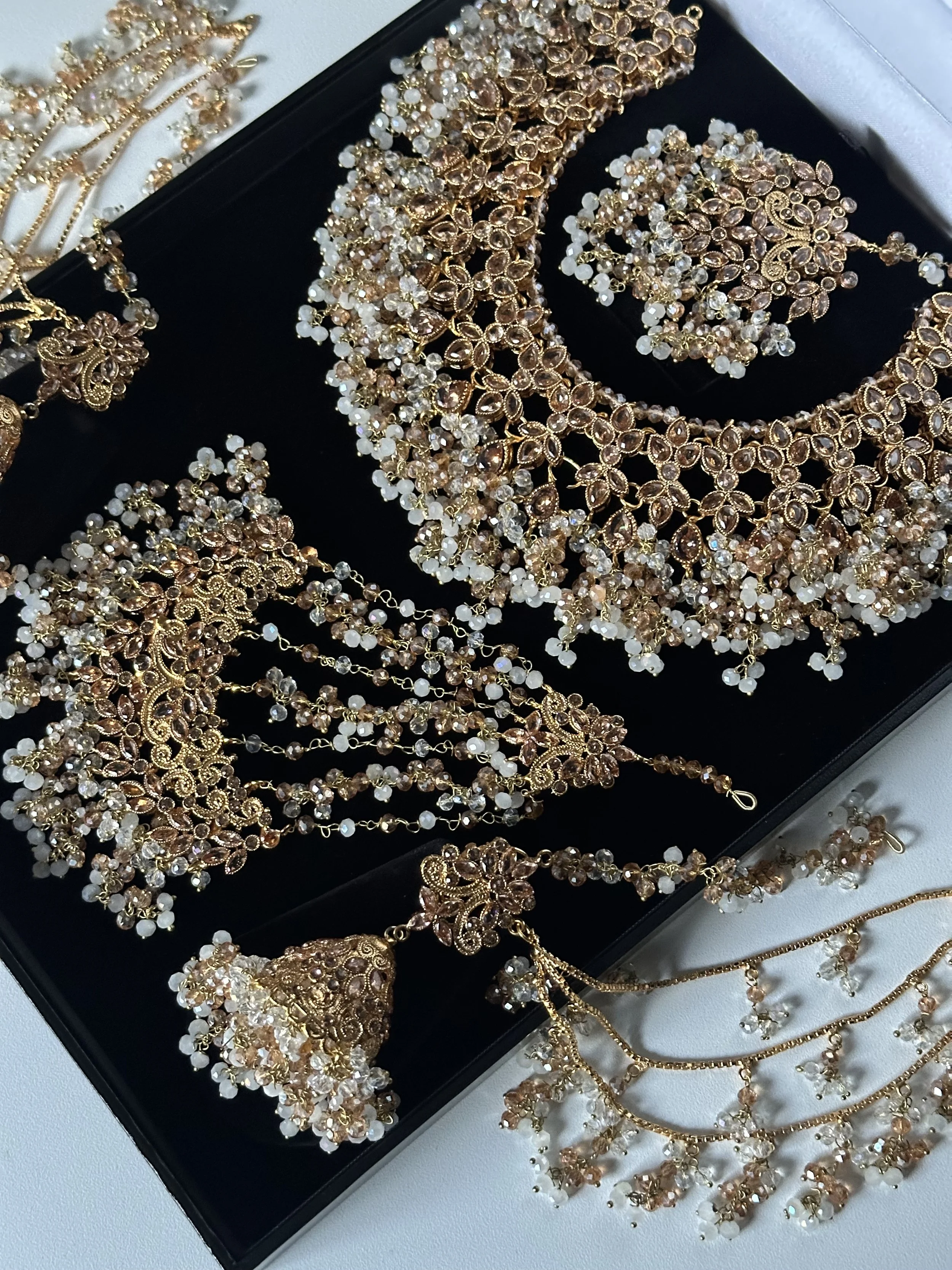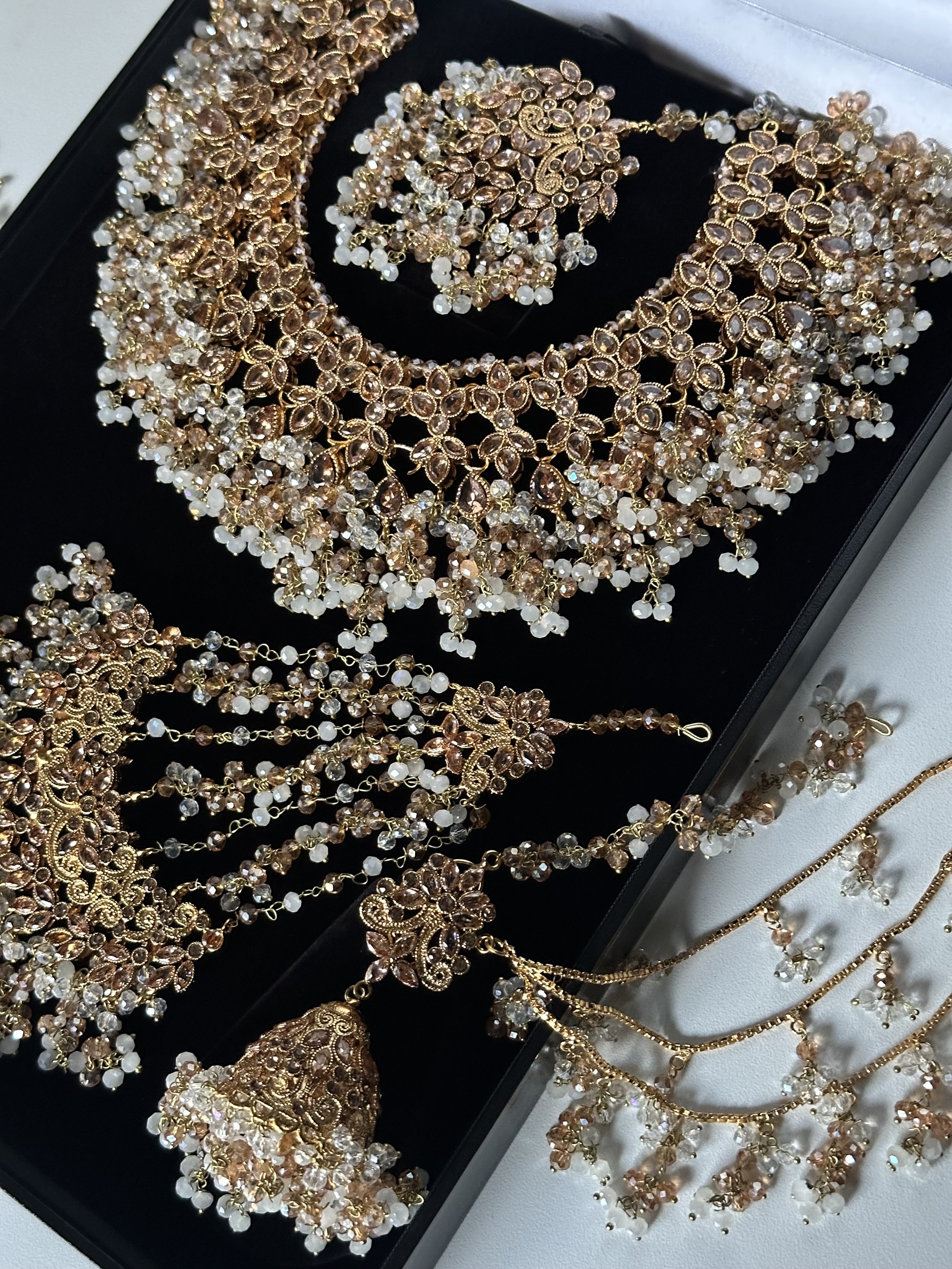 Necklaces Categories: All NECKLACE SETS Long mala AD sets Paachi Kundan sets Choker sets TEMPLE JEWELLERY BANGLES CLOTHING BRIDAL NECKLACE SET Tamil/South Indian sets Pakistani Sets Polki sets SALE EARRINGS Jhumka ACCESSORIES Jhoomar Earchain waist chain stud Armlet Hair Jewels Anklets Chandabalies TIKKA SET Bridal Jhumka tikka sets All | NECKLACE SETS | TEMPLE JEWELLERY | BANGLES | CLOTHING | BRIDAL NECKLACE SET | SALE | EARRINGS | ACCESSORIES | TIKKA SET | Quick View Ruby flexible set Sale Price: £7.99 Original Price: £14.99 Sale Quick View Flexible AD white set £14.99 Quick View Emerald green flexible set £14.99 Quick View Multicolour AD set £14.99 Quick View Ruby AD set £14.99 Quick View Gold plated bridal set £239.99 Quick View Maangai attiyal £34.99 Quick View Flexible gold plated choker set Sale Price: £9.99 Original Price: £14.99 Sale Quick View Silver flexible polki set £44.99 Quick View Light green kundan choker £114.99 Quick View Flexible Sage green kundan set £114.99 Quick View Round chain anklet with bells £17.99 Quick View Gold plated maangai anklet £28.99 Quick View Laskhmi bracelet £19.99 Quick View Bracelet Kada £17.99 Quick View White AD stone bangles £29.99 Quick View Ad stone bangle set £24.99 Quick View Nakshi bangle £22.00 Quick View Mother of Pearl in blue £39.99 Quick View Mother of pearl necklace set £39.99 Quick View Silver polki earchain Sale Price: £18.00 Original Price: £22.00 Sale Quick View Polki earchain champagne Sale Price: £18.00 Original Price: £22.00 Sale Quick View Emerlad green jhumka earchain £24.99 Quick View Maroon earchain jhumka £24.99 Quick View Pastel peach and mint earchain £24.99 Quick View Pastel jhumka earchain £24.99 Quick View Double shade flexible necklace set with earrings £64.99 Quick View Pastel pink and mint jhumki choker set £44.99 Quick View Ruby crescent pearl set £34.99 Quick View Flexible AD Ruby lotus £24.00 Quick View Ad peacock anklets £38.00 Quick View Elephant Hasli £22.00 Quick View Elephant Hasli £22.00 Quick View Mini lakshmi hair jadau £16.00 Quick View Ruby ad jadau billa £18.00 Quick View Temple hair clip £34.99 Quick View Ad jhumka £14.99 Quick View Large multi lotus jhumka £16.50 Quick View Multi lotus jhumka £14.99 Quick View Double jhumka earring £18.00 Quick View Peacock earcuff jhumka £22.00 Quick View Large brass lakshmi jhumka £24.99 Quick View Crescent necklace set Sale Price: £11.99 Original Price: £17.99 Sale Quick View Flexible pearl necklace set £64.99 Sold Out Quick View Blush flexible set £64.99 Quick View Sunset flexible set £64.99 Quick View Emerlad green flexible necklace set £64.99 Quick View Polki sheeshpool £14.99 Quick View Flexible multi maangai set £15.99 Quick View Flexible red manga set £15.99 Quick View White stone flexible necklace set £15.99 Quick View Peacock AD long mala set £68.99 Quick View Flexible peacock necklace set £38.99 Quick View Lakshmi lotus bangles £22.00 Quick View Multi colour lakshmi choker set £70.00 Quick View White lakshmi ad choker set £70.00 Quick View Sage green lakshmi choker £70.00 Quick View Long crescent ruby mala £44.99 Quick View Flexible crescent necklace set £34.99 Quick View Ruby flexible lotus set £24.00 Quick View Maroon lotus bangle set £18.00 Quick View Lotus bangle set £18.00 Quick View Flexible gold necklace set £64.99 Quick View Gold plated mathappati £38.00 Quick View Blush necklace set polki £115.00 Quick View Polki bridal necklace set £115.00 Quick View Blush and baby blue bridal set - Saira £160.00 Quick View Maroon bridal choker set - Saira £160.00 Quick View AD V neck set £124.99 Quick View Arakku long mala £28.00 Quick View Flexible Arakku necklace set £22.00 Quick View Flexible pearl necklace set £16.50 Quick View Flexible choker set £22.00 Quick View Lotus flexible choker set £22.00 Quick View Lakshmi choker set £17.99 Quick View Ruby Moissanite choker set £84.99 Quick View Paalak Mala £34.99 Quick View Alari choker set in Hot pink Sale Price: £32.00 Original Price: £58.99 Sale Quick View Alari in Royal blue £36.99 Quick View Golden mala set £16.00 Quick View Lakshmi Mala set £16.00 Quick View Purple lotus set £16.50 Sold Out Quick View Green lotus set £16.50 Quick View Ruby Lotus necklace set £16.50 Quick View Pink choker kundan set £154.99 Quick View Dark purple AD flexible set £115.00 Quick View Light green kundan set with drop earrings £44.99 Quick View Pastel pink flexible kundna set £38.99 Quick View Sage green flexible kundna choker set £44.99 Quick View PAACHI Kundan mini choker £36.99 Quick View Dark sage green kundan choker set £54.99 Quick View Green and pearl kundan choker set £38.99 Quick View Paalak flexible green choker £17.99 Quick View Peacock forming necklace set £34.99 Quick View Antique Temple set Sale Price: £24.99 Original Price: £40.00 Sale Quick View Flexible kundan Emerlad green necklace set £54.99 Quick View Flexible kundan choker £39.99 Quick View Lilac flexible kundan choker £44.99 Quick View Kundan Sage green choker set £39.99 Quick View Sage green lakshmi choker set from £129.99 Quick View Polki necklace set £115.00 Quick View Dark red Polki set £48.99 Quick View Emerlad green flexible set £34.99 Quick View Flexible kemp necklace set £44.99 Quick View 4 layered pearl earchain £16.50 Quick View Double layered pearl earchain £9.99 Quick View Triple layered pearl earchain Sale Price: £9.99 Original Price: £13.99 Sale Quick View Paalak ruby choker £17.99 Quick View Paalak necklace set £17.99 Quick View Guttapusalu Bridal set £160.00 Quick View Suba in orange and green Sale Price: £48.99 Original Price: £72.45 Sale Quick View Guttapusalu Bridal set £55.00 Quick View Saba in Turquoise and Red £68.57 Quick View Saba in Red ,orange and Green £68.57 Quick View Saba in Lilac and purple £68.75 Quick View Saba in Peach and Green Sale Price: £25.00 Original Price: £68.75 Sold Out Quick View Invisibl