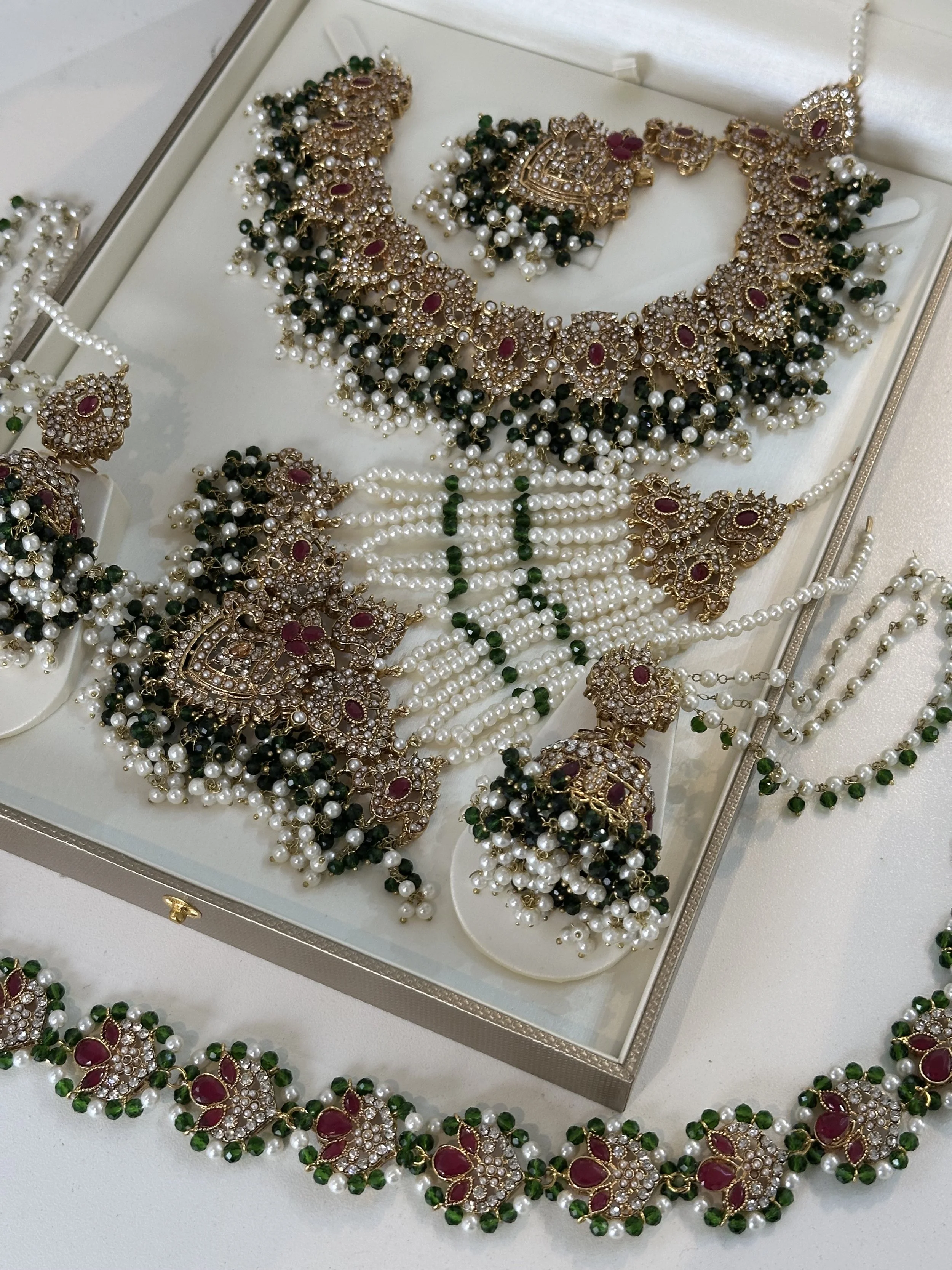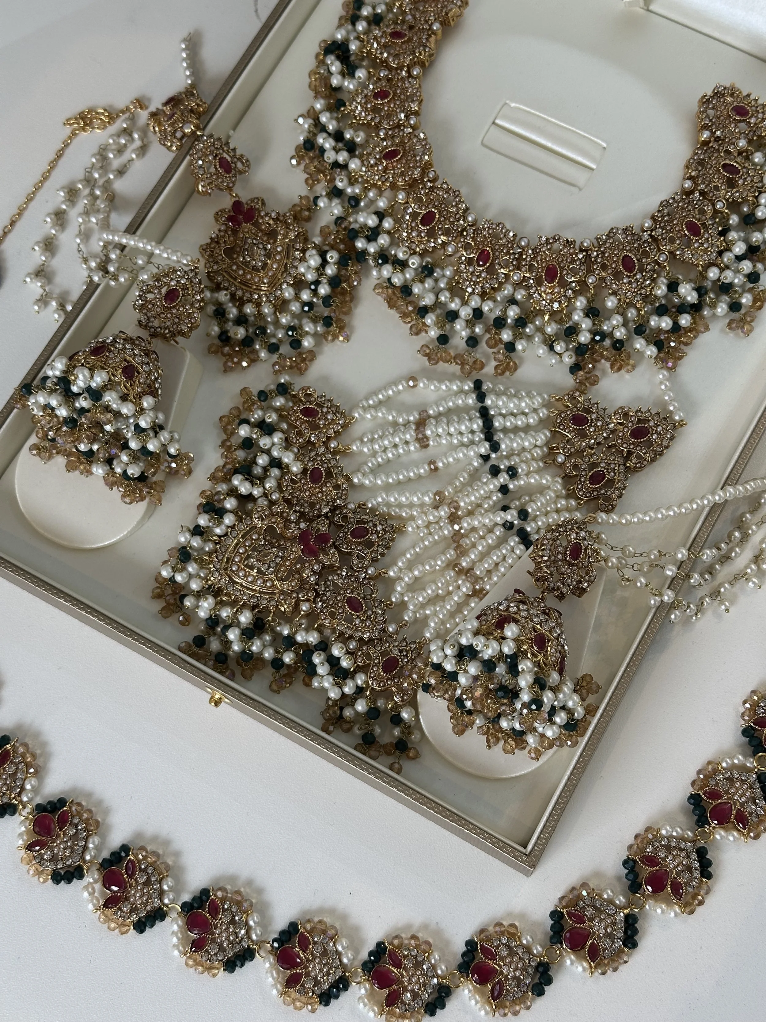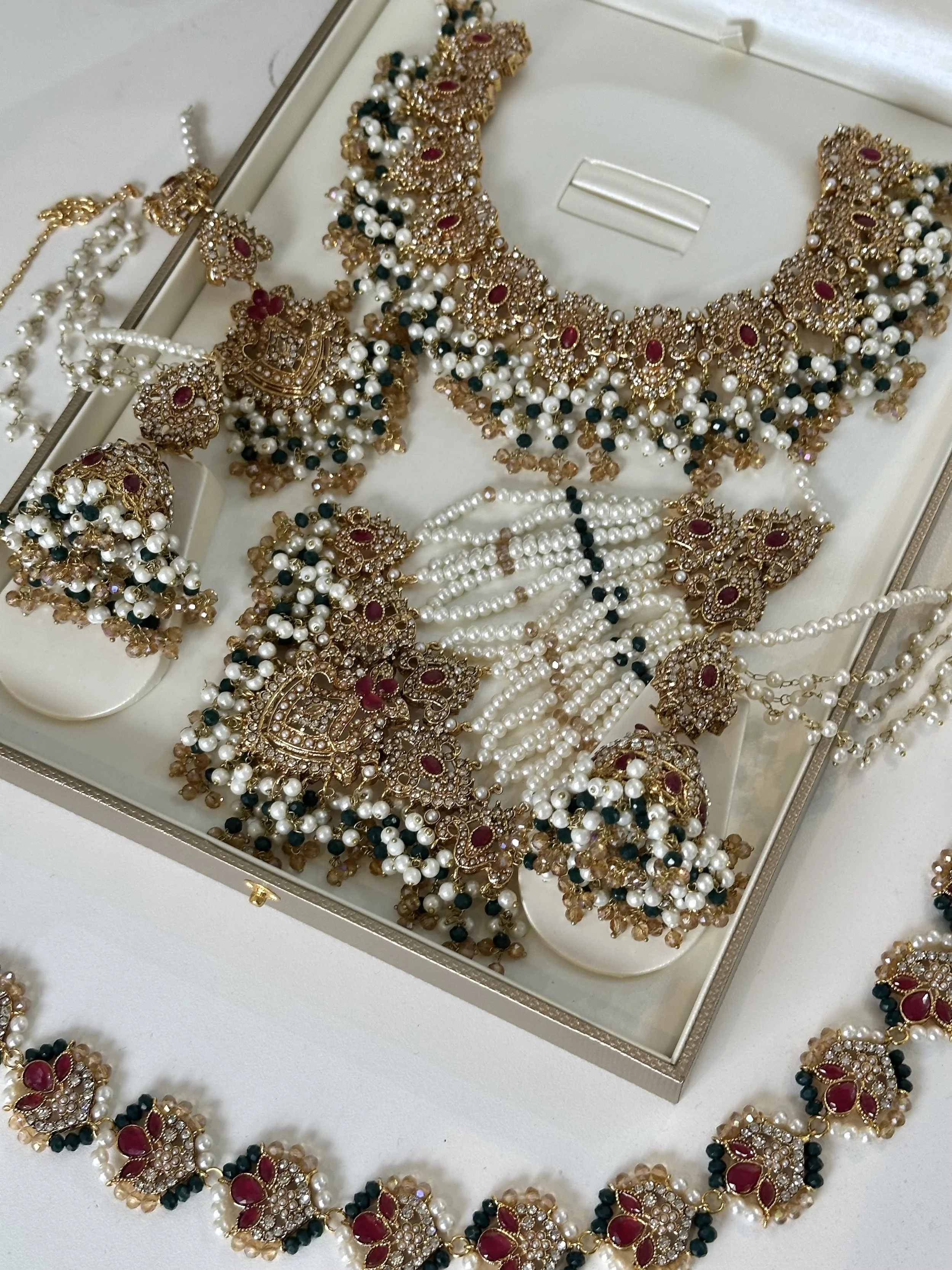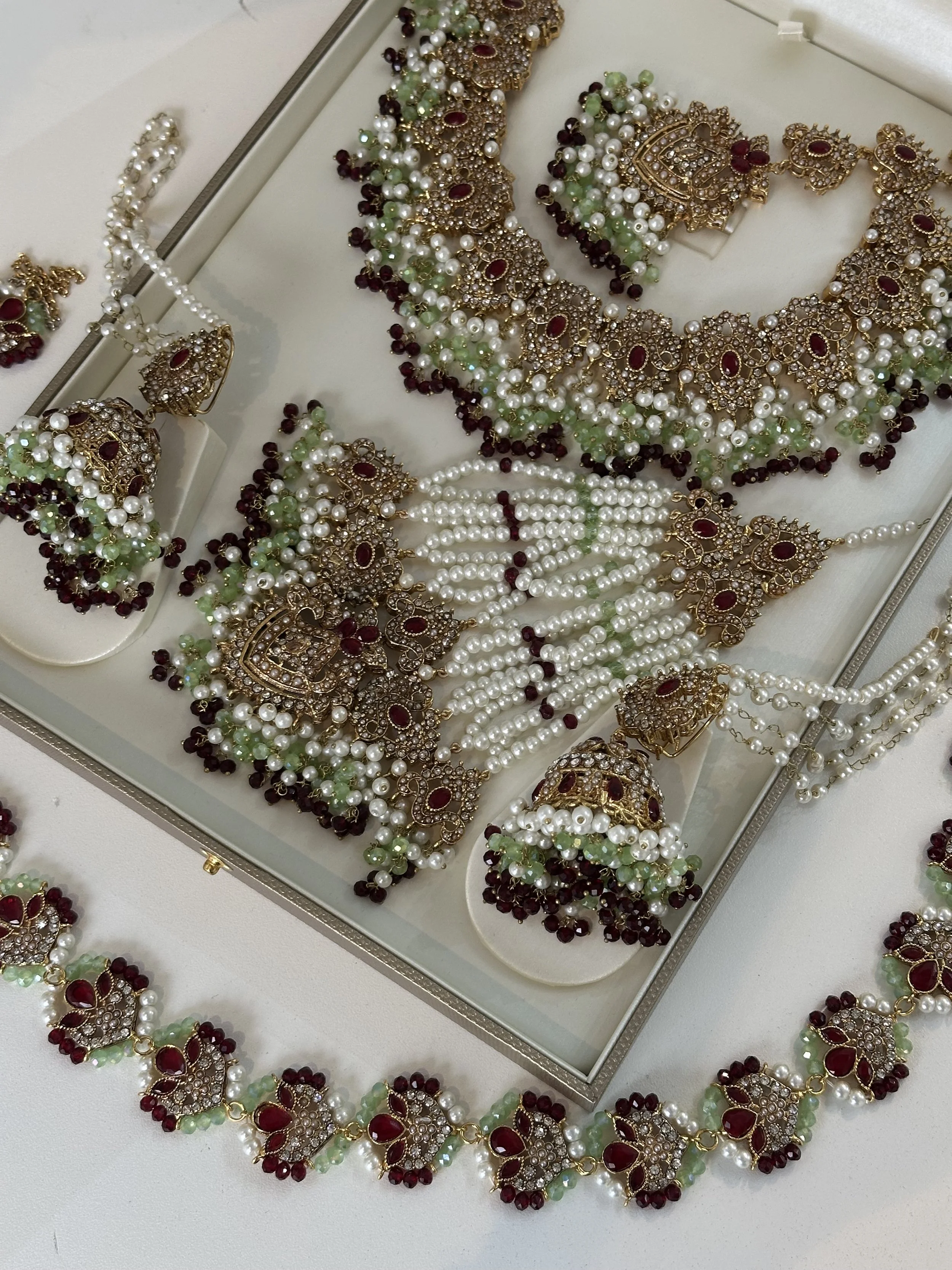 Categories: All NECKLACE SETS Long mala Paachi Kundan sets Choker sets AD sets SALE BRIDAL NECKLACE SET Tamil/South Indian sets Pakistani Sets Polki sets TEMPLE JEWELLERY BANGLES CLOTHING EARRINGS Jhumka Chandabalies stud ACCESSORIES Earchain waist chain Armlet Hair Jewels Anklets TIKKA SET Bridal Jhumka tikka sets All / BRIDAL NECKLACE SET / Quick View Gold and green bridal set £89.99 Quick View Green stone green bridal set £89.99 Quick View Ruby stone and green bridal set £89.99 Quick View Sage green and maroon set £89.99 Quick View Emerlad green jhoomar set £89.99 Quick View Sunflower set in Red and pink Sale Price: £65.00 Original Price: £98.57 Sale Quick View Sunflower set in orange and Navy Sale Price: £65.00 Original Price: £98.75 Sale Quick View Hyderabadi jadau set in blush £124.99 Quick View Hyderabadhi Jadau set £124.99 Quick View Hydrabhadi set in sage green £165.00 Quick View Hydrabhadi jadau with Mala £187.56 Quick View Hydrabhadi jadau in sage green £124.99 Quick View Hydrabhadi jadau in Turquoise £124.99 Quick View Hydrabhadi Jadau in Red £124.99 Quick View Hydrabhadi Jadau in Green £124.99 Quick View Fazila in Marroon £120.00 Quick View AD Deep blue necklace set £115.00 Quick View Taanya in Teal and blush £114.99 Quick View Tharsha in Lilac £145.00 Quick View Tharsha in Mehendhi £145.00 Quick View Choker and Mala Bridal set Sale Price: £95.00 Original Price: £165.00 Sale Quick View Choker and Mala Bridal set Sale Price: £95.00 Original Price: £165.00 Sale Quick View Taanya Double necklace set in Tourquoise Sale Price: £125.00 Original Price: £145.00 Sale Quick View Kayalini 24K gold - Marroon £299.00 Quick View Forming choker bridal set £199.00 Quick View Blush Bridal Choker set £230.00 Quick View Nabi in Gold £92.99 Quick View Golden bridal set Sale Price: £90.00 Original Price: £145.00 Sale Quick View The Rani Ensemble £245.65 Quick View Double necklace set Sale Price: £130.00 Original Price: £186.00 Sale Quick View Kavi in Red £124.54 Quick View Kavi in Emerald £92.99 Quick View Kavi in Baby Pink £92.99 Quick View Kavi in Pearls £92.99 Sold Out Quick View Double layered semi bridal set Sale Price: £125.00 Original Price: £143.56 Sale Quick View Fazila in sunset £120.00 Sold Out Quick View Aneya Bridal set Sale Price: £280.00 Original Price: £340.00 Sale Quick View Aashi in Purple £134.57 Quick View Fazila in orange and maroon £120.00 Quick View Jasmine in red £88.75 Quick View Anita in Pearl Sale Price: £78.75 Original Price: £97.85 Sale Quick View Aashi in White £132.54 Quick View Taanya in sunset £114.99 Quick View Taanya- Olive green and Maroon £114.99 Quick View Taanya in parrot green £114.99