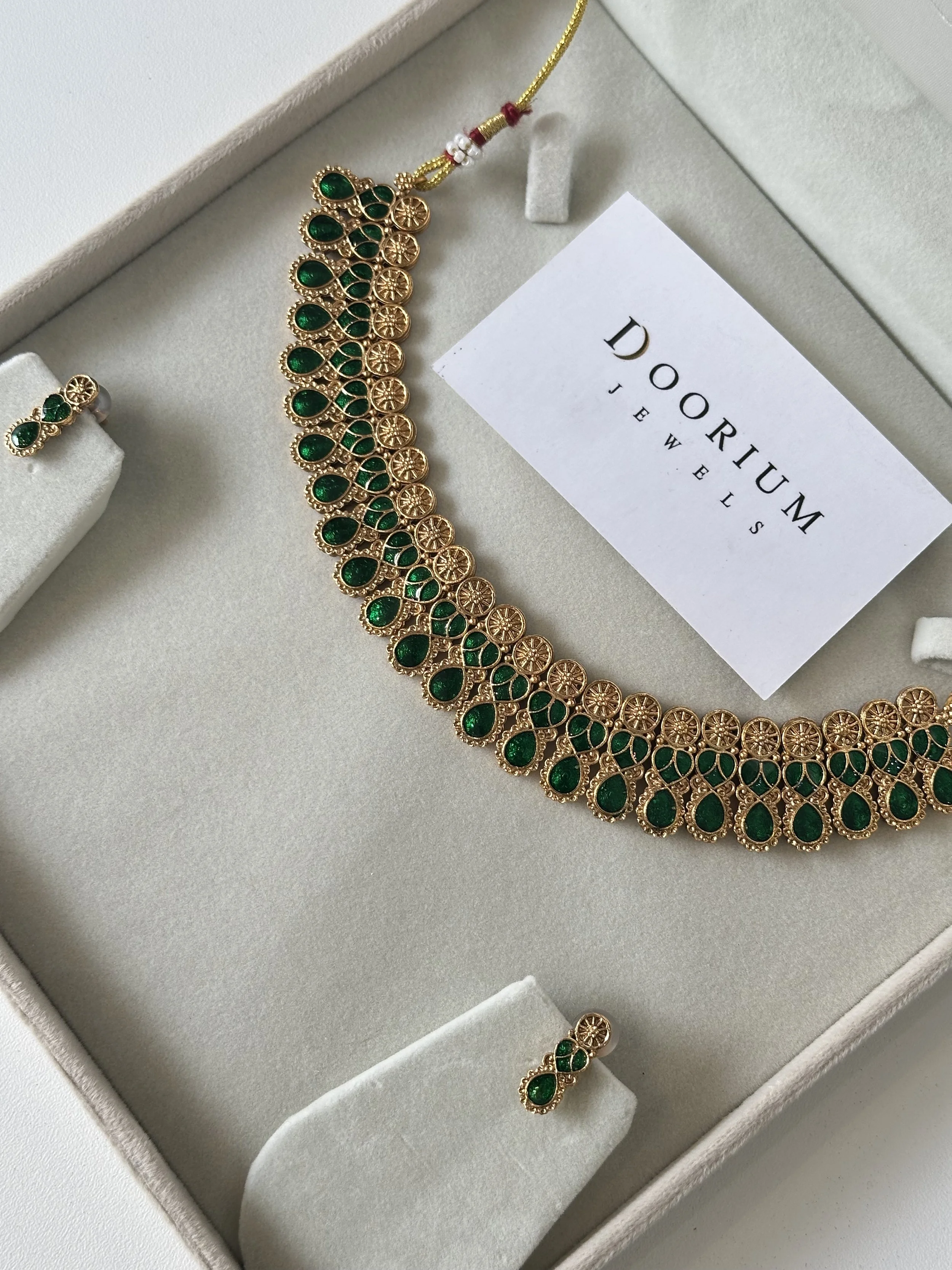 Beautiful polki mathapatti in dark golden finish with pearl detailing