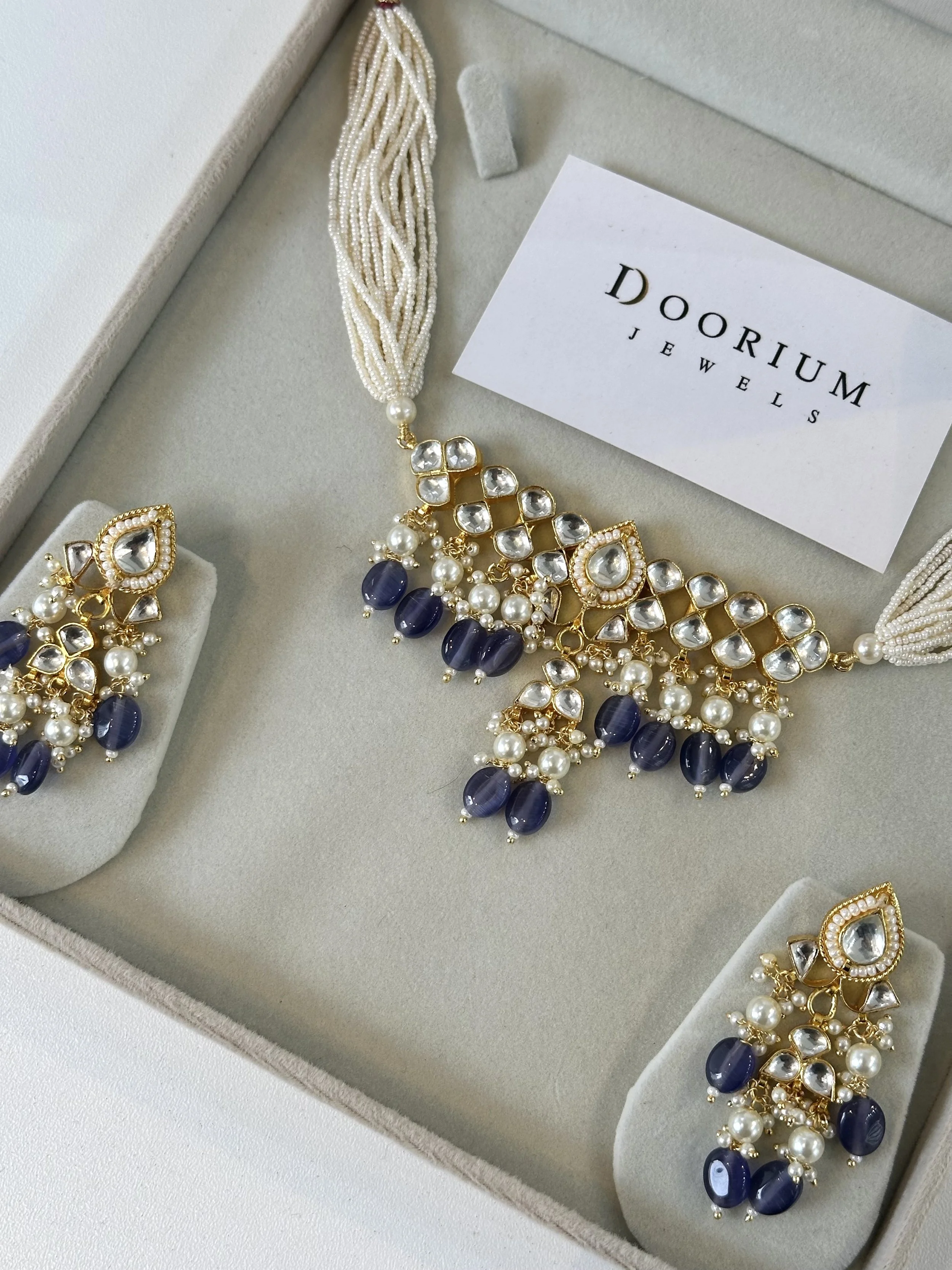6 Piece Polki set with flexible necklace and earrings with detachable earchain . The set comes with a medium sized tikka.