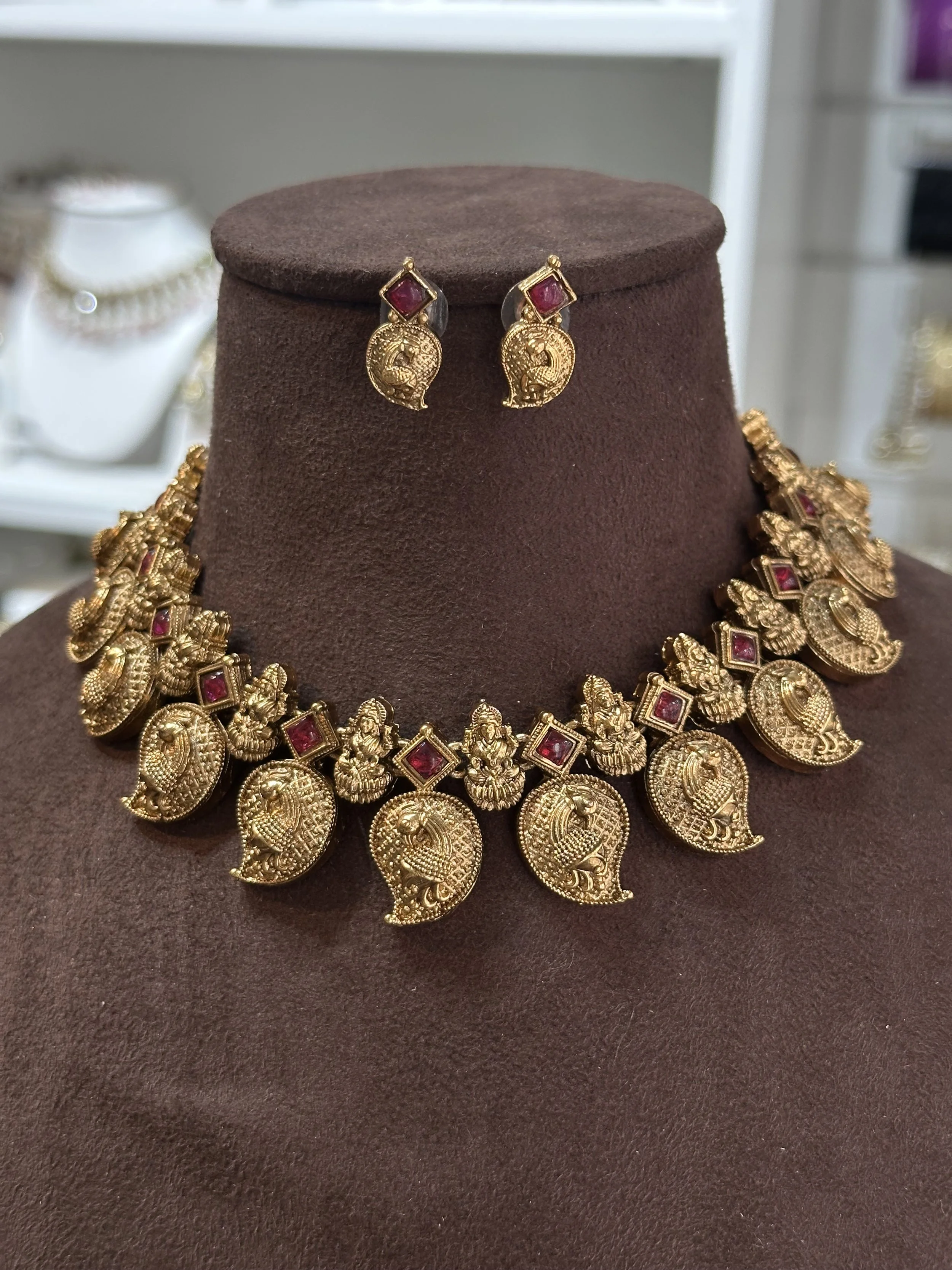 This gorgeous gold-plated Impon necklace is such a perfect blend of tradition and elegance! The intricate design with sparkling stones gives it a beautiful, timeless look, and that cute pendant in the middle is just everything! It’s ideal to pair with any saree, especially for weddings or festive occasions. It has such a traditional Tamil vibe, but with a touch of sparkle, making it perfect for anyone who loves that classic yet glamorous style!