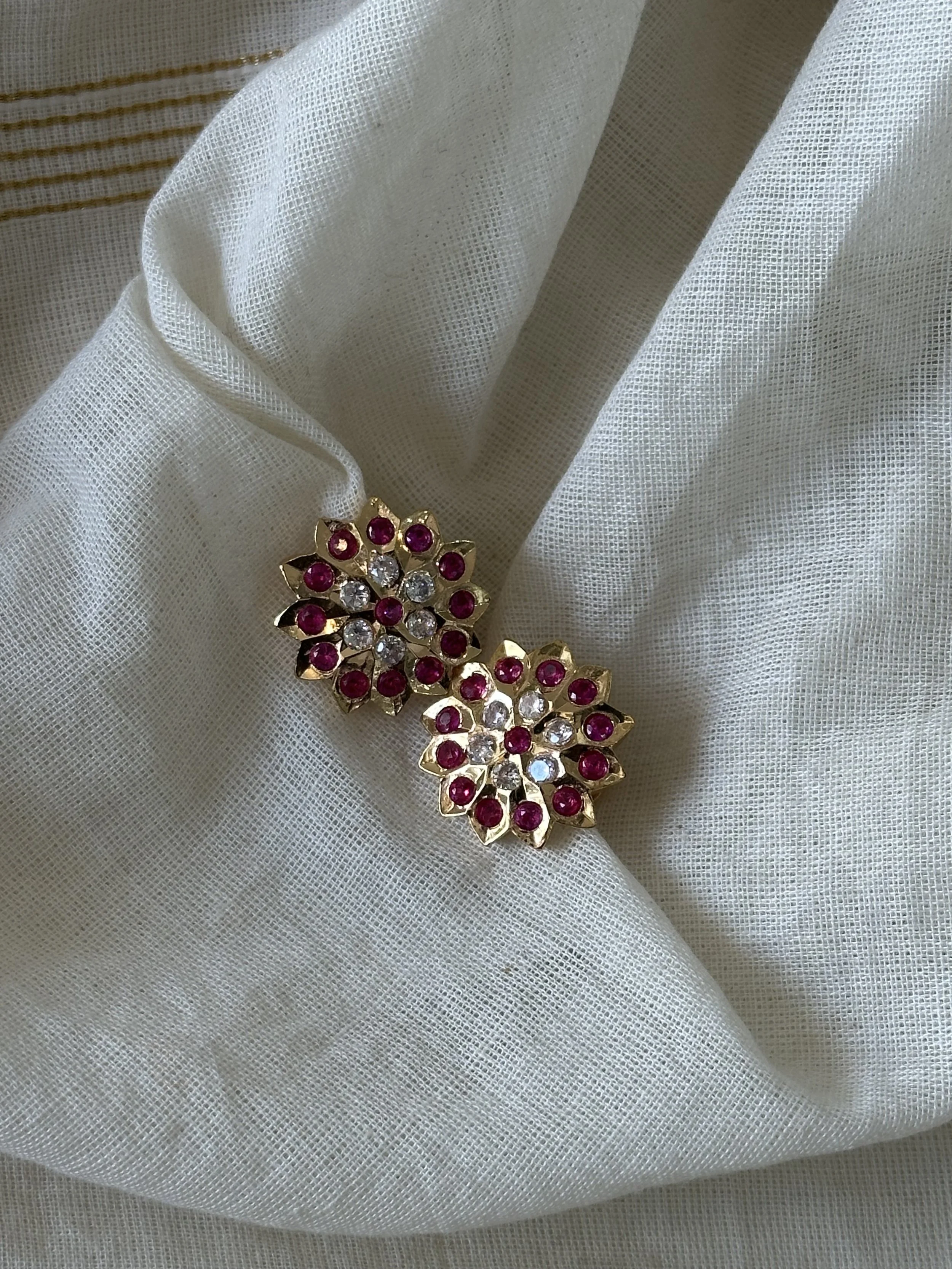Necklaces › Large ruby stud Large ruby stud £18.00 Gold plated ruby stud Gold plated ruby stud Quantity: Add To Cart Added! You Might Also Like Quick View Large ruby stud £18.00 Quick View Ruby flower stud £16.00 Quick View Pillayar studs £17.55 Quick View Star stud £18.00 Quick View Kundan studs £19.99