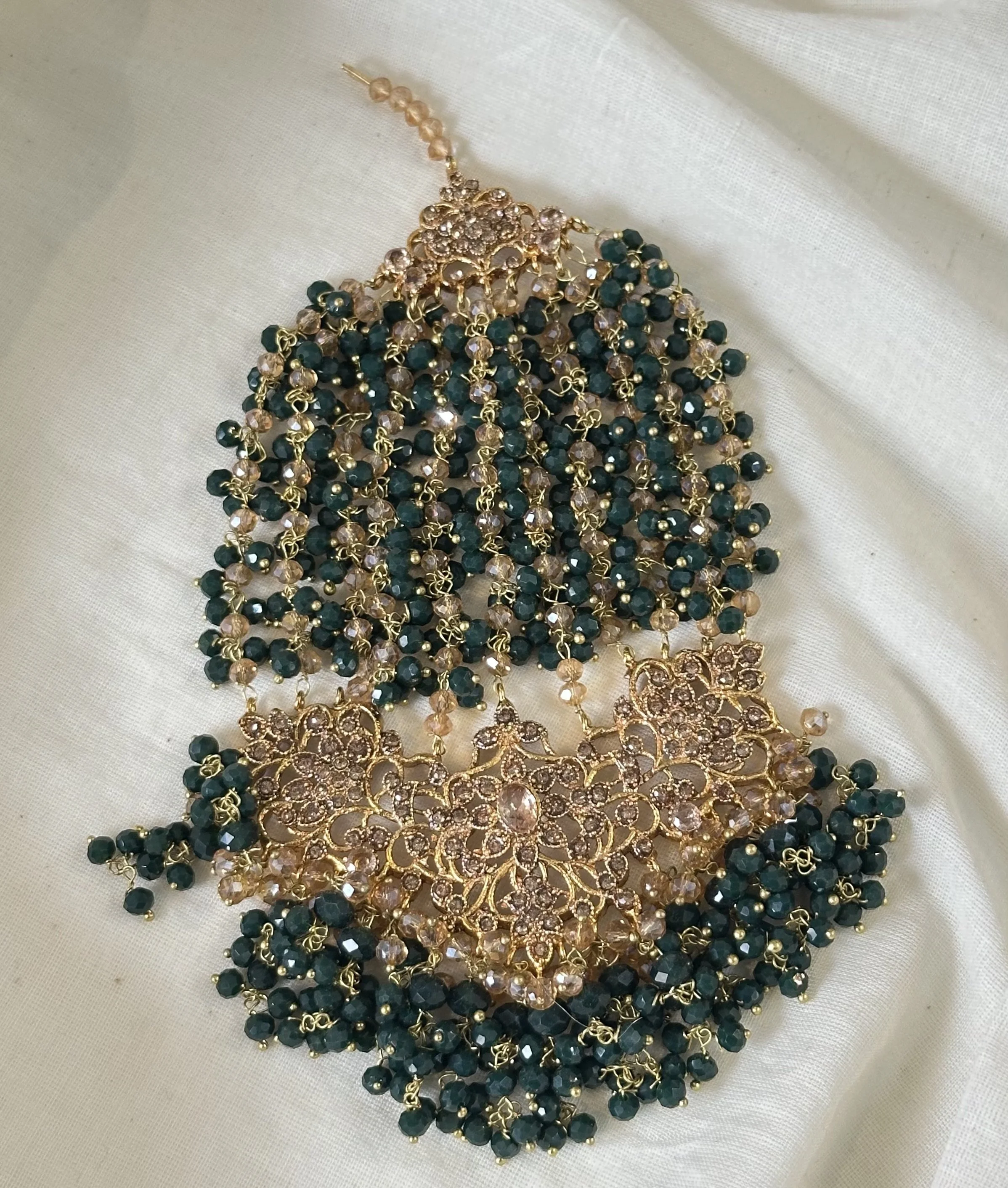 Maroon beaded jhoomar with crystal detailing
