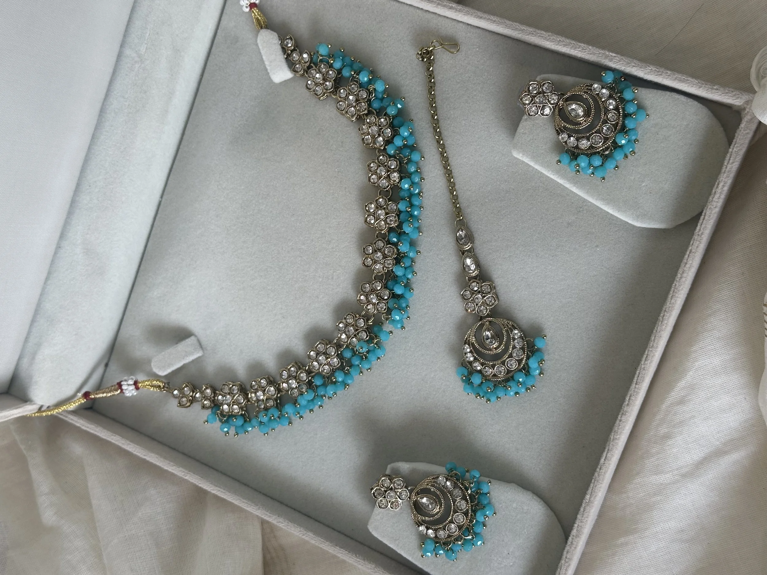 Beautiful three layered flexible earchain with Jhumka detailing in antique golden finish.