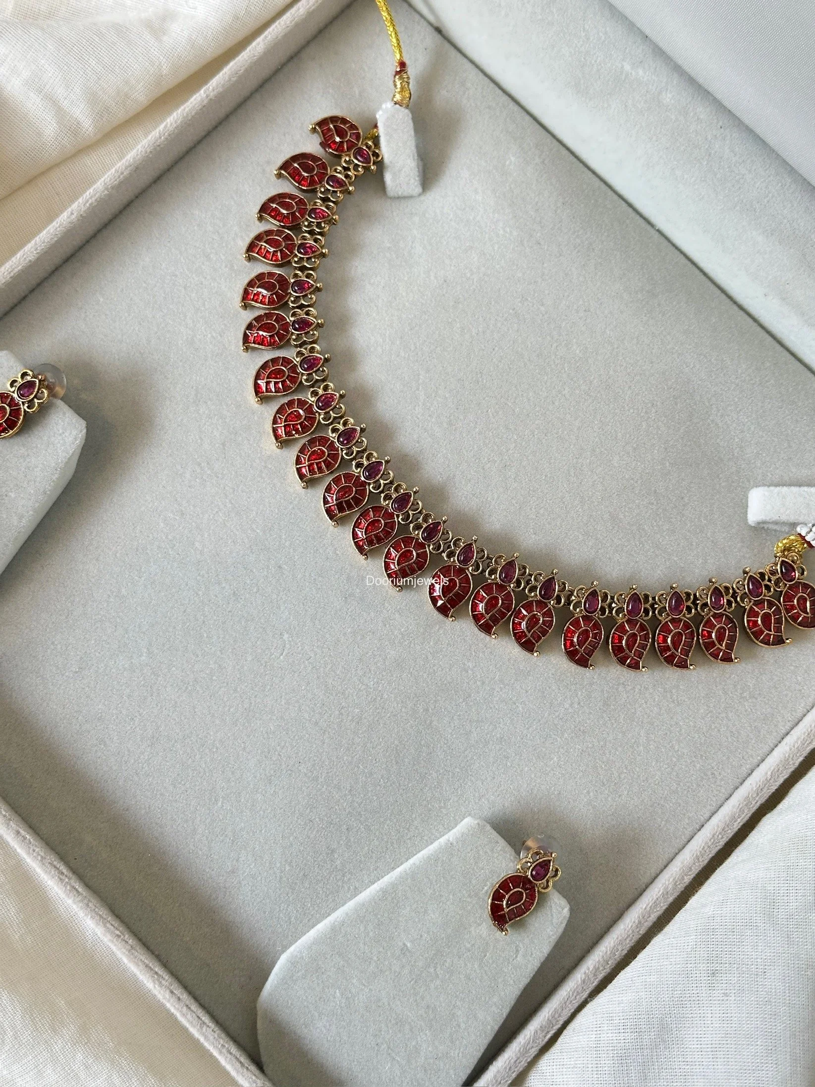 Rajwadi necklace set with ruby stone setting with Jhumka