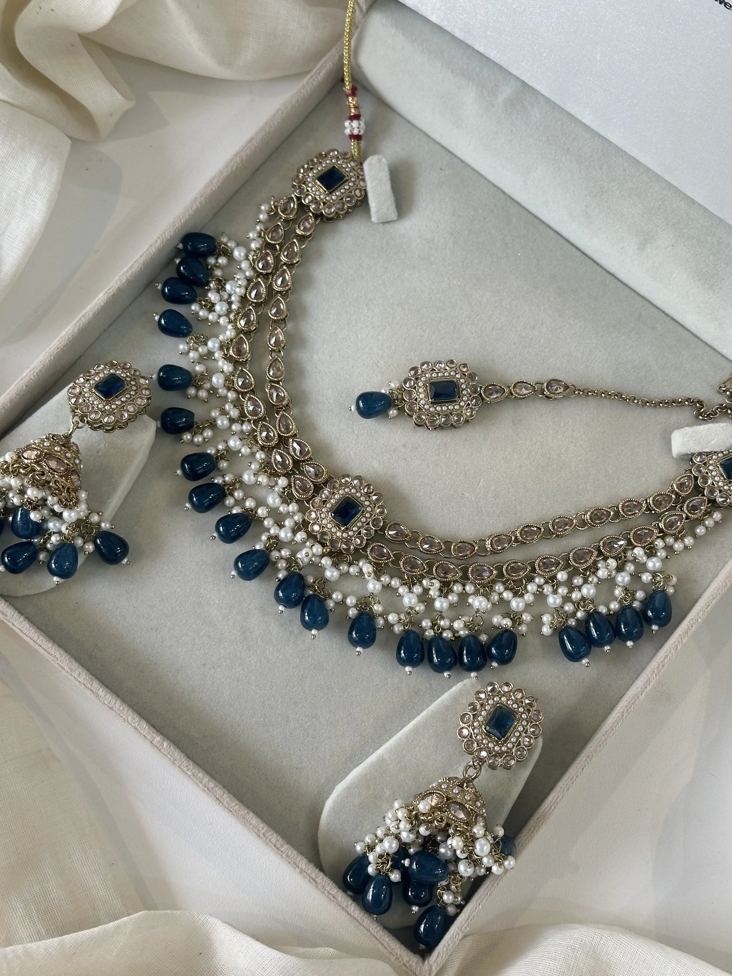 Flexible double layered necklace set with jhumka and tikka